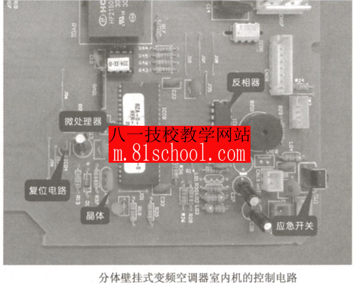 控制电路是分体壁挂式变频空调器的核心控制部分,该电路主要由微处理器等元器件构成的,其实物如图1下图所示:
